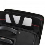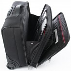 Бриф-кейс выполнен из нейлона - прочного материала, устойчивого к влаге и выгоранию, со вставками из полиуретана. Внутри предусмотрено специальное место для ноутбука с диагональю 17" и планшета - 10". В основном отделении есть прижимные ремни для багажа, что очень удобно, если Вы в бизнес-поездке, а благодаря небольшому весу и размеру, Вы можете взять его на борт самолета как ручную кладь. На фронтальной поверхности расположен карман на молнии со сдерживающими углами. В кармане обустроен мини-офис, где Вы сможете расположить письменные принадлежности, банковские карты, телефон. Кейс-пилот оснащен двумя колесами и широкой ножкой для устойчивости. Для удобства перемещения есть телескопическая ручка. Гарантия 2 года.