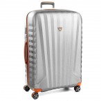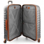 Коллекция E-Lite от Roncato чрезвычайно легкая, устойчива к воде и царапинам благодаря использованию 100% поликарбоната. Внутри чемодана два отделения. Одно оснащено прижимными ремнями для фиксации багажа, сверху закрывается тканевой крышкой на молнии, второе отделение также закрывается крышкой, оснащенной карманами под сеткой для мелких вещей. Подкладка внутри чемодана съёмная. Чемодан оснащен удобной телескопической ручкой с несколькими уровнями фиксации и двумя ручками (сверху и сбоку) для легкого подъема и переноски чемодана в двух положениях. Легкое передвижение чемодана обеспечивается четырьмя спаренными, устойчивыми к ударам колесами, которые поворачиваются на 360̊. Встроенный кодовый замок с функцией TSA и молния с защитой от несанкционированного доступа и разрывов сохранит Ваш багаж. Гарантия 10 лет. Вес: 3,5 кг. Объем: 114 л.