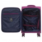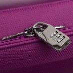 Аксессуар закрывается на молнию, оснащен встроенным кодовым замком с системой TSA. Внутри чемодана два отделения, одно - оснащено прижимными ремнями, второе закрывается текстильной крышкой на молнии.