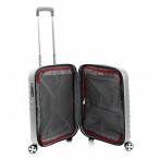 Внутри чемодан разделен на две равные половинки - основное отделение и отделение в крышке чемодана. Основное отделение содержит прижимные ремни для закрепления багажа и закрывается сетчатой перегородкой. Дополнительное отделение закрывается тканевой перегородкой на которой расположены два сетчатых кармана на молнии. Подкладку, при необходимости, можно легко снять и, например, постирать.