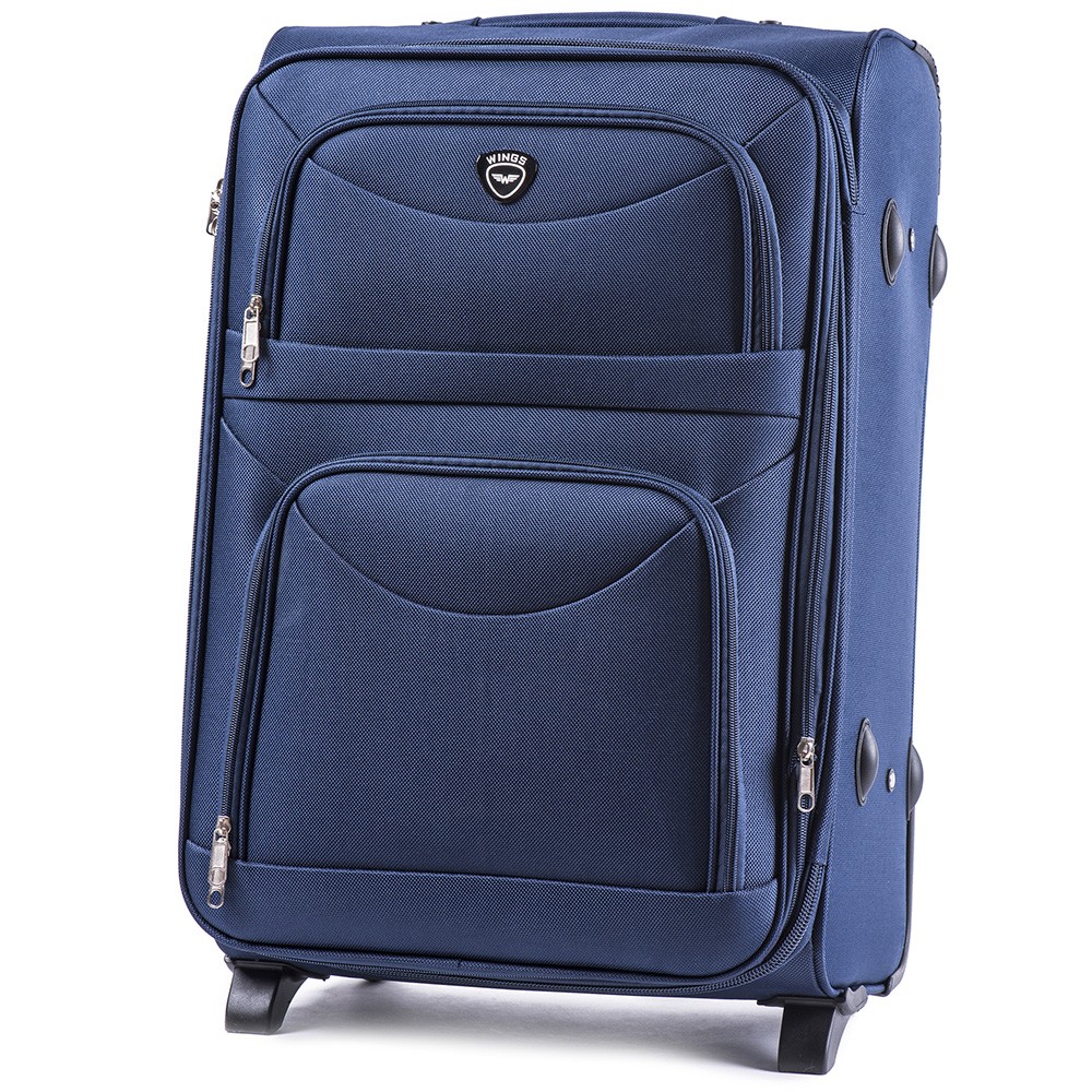 Надежный недорогой багаж от ТМ WINGS. Материал: полиэстер. Внутри имеет одно большое отделение с ремнями-фиксаторами для одежды и сеточный карман на крышке. Возможность увеличения объёма за счёт раздвижной вставки на крышке чемодана. На лицевой стороне чемодана расположены два кармана на молнии с широкой системой открывания. С тыльной стороны - адресная бирка. Выдвижная телескопическая ручка. Верхняя и боковая ручки для переноски. Два колеса. Встроеный кодовый замок. Гарантия 2 месяца. Вес 4,2 кг. Объем 93/110 л.