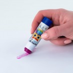 Клей кольоровий, але це зроблено не заради краси. Колір — це індикатор нанесення, він допомагає дитині розвивати акуратність. Кольоровий клейовий слід добре помітний, тому його нанесення легко контролювати. Відразу після висихання слід стає безбарвним.