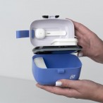 Ланчбокс виготовлений із безпечного харчового пластику, не містить BPA, має приємну на дотик матову поверхню та силіконову ручку-петлю — зручно носити в руці. Незамінний для тих, хто любить корисні перекуси та комфорт у деталях.