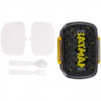 Внутрішнє наповнення включає столове приладдя для комфортного перекусу: виделка, ложка та два контейнери. Таким чином, можна складати різні страви в один ланчбокс. Це дуже зручно та гігієнічно.