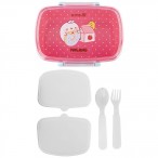 Ланчбокс можна мити в посудомийній машині, зберігати в холодильнику та використовувати для розігріву їжі в мікрохвильовій печі (не закриваючи кришкою).