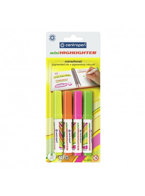 Маркер для виділення тексту на всіх видах паперу. Слід не передається по факсу, не просочується крізь папір. Не розмазує текст, роздрукований на струменевому принтері. Світлостійке чорнило на водній основі, насичені кольори. Зручний компактний міні-розмір. Не висихає без ковпачка протягом 5 днів. Ширина сліду 1-4,6 мм. Пишучий вузол витримує велике навантаження без деформації.