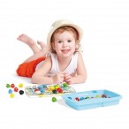 Красочный набор для занятий мозаикой поможет развить мелкую моторику пальцев, зрительно-моторную координацию, цветовосприятие и воображение ребенка. Фишки сделаны в 6-и цветах, с их помощью ребенок сможет сделать объемными элементы различных картинок. Для этого ему нужно расположить картинку под прозрачной основой с отверстиями и «украсить» ее, вставляя фишки в основу на примере разноцветных изображений или так, как подскажет фантазия. Картинки с одной стороны цветные, а с другой – черно-белые, что позволяет развить творческий потенциал ребенка. А в специальном кейсе удобно хранить элементы мозаики. В комплект входят: - 48 крупных фишек, - 8 двусторонних карточек, - удобный кейс с ручкой для веселой игры. Рекомендовано для детей в возрасте старше 2-х лет.