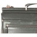 Мужская сумка из натуральной кожи в стиле саквояжа. Закрывается классическими стальными защелками. Особо стоит отметить, что крышка крепиться на стальном штыре, который работает как шарнир, обеспечивая очень удобный доступ к содержимому портфеля. Внутри два больших отделения. В одном из них на задней стенке карман на молнии, в дугом - блок дополнительных карманов для мобильного, блокнота и два держателя для ручек. Снаружи на лицевой стороне - большой отдельный карман на всю площадь саквояжа. С тыльной стороны расположен большой карман на молнии. В комплекте есть текстильный плечевой ремень регулируемой длины.