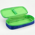 Пенал имеет объемное отделение, которое содержит резинки для пишущих принадлежностей. Такое строение позволяет разместить не только канцелярию для письма, но и для уроков труда - ножницы, клей и пр. Яркая цветная подкладка позволяет быстро найти нужную вещь.