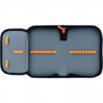 У пеналі легко підтримувати порядок. Ручки, олівці, фломастери, ножиці, гумка та точила: кожен предмет буде на своєму місці, акуратно закріплений еластичною тасьмою.