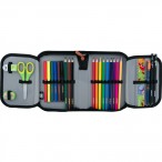 У пеналі легко підтримувати порядок. Ручки, олівці, лінійка, фломастери, ножиці, гумка та точилка: кожен предмет залишатиметься на своєму місці, акуратно зафіксований еластичною резинкою.