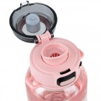Кришка відкривається одним натисканням і фіксується від випадкового розкриття. Має практичну пластикову ручку-кільце. У комплекті — знімний ремінець на карабінах для зручного носіння. Герметична конструкція захищає рюкзак від протікань, а широке горлечко полегшує миття. Це практичний аксесуар, який поєднує функціональність і стиль.