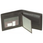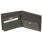 Мужское горизонтальное портмоне. Внутри имеет два отдела для купюр, монетницу, один прозрачный кармашек из сетки и один боковой карман. Также портмоне имеет откидной клапан с отсеками для двух кредитных карт и прозрачным карманом из сетки. Размер: 125х95 мм.