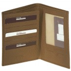 Мужское вертикальное портмоне без монетницы. Внутри имеет один отдел для купюр, три боковых кармана для документов (один из них выполнен в виде уголка), один прозрачный отдел для документов, кармашек для жетона и восемь отсеков для кредитных карт. Размер: 105х150 мм.