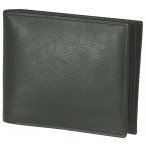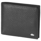 Мужское горизонтальное портмоне. Внутри имеет два отдела для купюр, монетницу, один прозрачный отсек и внутренний клапан на кнопке, на котором расположены шесть отделов для кредиток и один потайной карман с доступом сверху. Размеры: 120х95см.