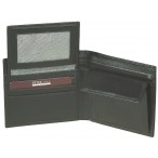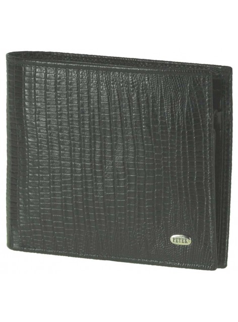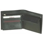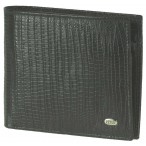 Мужское горизонтальное портмоне. Внутри имеет два отдела для купюр, в перегородке между ними есть отделение на молнии, мелочницу, три отделения для кредиток, один боковой карман и откидной клапан, на котором расположены три отдела для кредитных карт и один прозрачный отсек. Размеры: 115х97 мм.