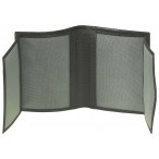 Мужское вертикальное портмоне. Внутри имеет два отдела для купюр, два прозрачных отсека для документов и два откидных клапана, на которых расположены три отделения для кредиток и три прозрачных кармана. Снаружи, на задней стенке находится монетница. Размеры: 100х123 мм.