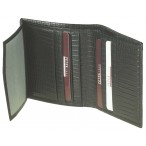 Мужское вертикальное портмоне без монетницы. Внутри имеет один отдел для купюр, шесть отделений для кредиток, два боковых кармана и откидной клапан, на котором расположены два прозрачных отделения, которые по формату подходят для автодокументов евростандарта. Размер: 95х100 мм.