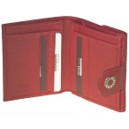 Женская двухсторонняя модель кошелька. С одной стороны имеется монетница на кнопке, с другой (закрывается хлястиком на кнопке) - расположены один отдел для купюр, шесть отделений для кредиток и четыре боковых кармана.