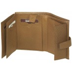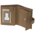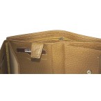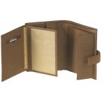 Мужское вертикальное портмоне. Закрывается хлястиком на кнопке. Внутри имеет три отдела для купюр, одно из которых закрывается на молнию, монетницу, три отделения для кредиток, два боковых кармана и два откидных клапана, закрывающихся хлястиком на кнопке. На одном клапане три отделения для кредиток и прозрачное отделение, на втором - три отделения для кредиток, один боковой карман и одно прозрачное отделение. Размер: 100х125 мм.
