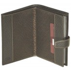 Обложка для паспорта и автодокументов с двумя отделениями для купюр. В этой модели предусмотрено отдельное отделение для паспорта, отделение для прав в формате карточки (прозрачный кармашек из полимера), несколько страниц из прозрачного полимерного материала для бумаг, один большой файл для доверенности или страховки на машину и два отдела для бумажных денег. Обложка застёгивается хлястиком на кнопке. Размер: 105х140 мм.