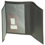 Портмоне с отделением для паспорта. В этой модели предусмотрены два отделения для купюр, отдельное отделение для паспорта, два прозрачных окошка для документов, пять карманчиков для кредиток и два боковых отделения. Размер: 105х140 мм.