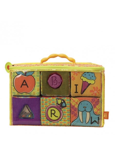 Прекрасный набор мягких ярких кубиков специально предназначен для маленьких детских ручек. Стороны кубиков имеют разные текстуры тканей и разные рисунки. На них изображены буквы, животные, предметы и узоры. В кубики по принципу сортера вставляются специальные фигурки разных форм, которые можно катить, грызть и тарахтеть ими. Длина стороны кубика: 9 см. В наборе: 6 кубиков, 5 вставок, красивая сумочка для кубиков. Упаковка демонстрационная. Размер игрушки: 28х9,5х22 см. Рекомендовано для детей в возрасте старше 6 месяцев.