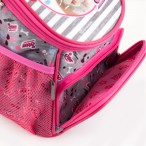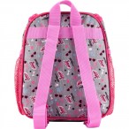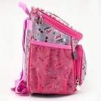 Рюкзак состоит из отделения, переднего и 2 боковых карманов, куда помещается бутылка с водой. Имеет мягкую ручку-петлю. Усиленное дно легко моется и сохраняет устойчивость рюкзака. Регулируемые лямки и небольшой вес, всего 240 г, делают рюкзак необременительным для ребенка. Светоотражающие элементы обеспечивают безопасность ребенка на дороге в темное время суток.