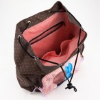 Рюкзак утягивается на шнуре и закрывается с помощью магнитной кнопки, скрытой под декоративным ремнем. Это удобно и надежно закрепит содержимое изделия.