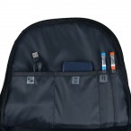 • У першому — кишеня для ноутбука. У другому — внутрішня кишеня з сіточкою, кишеня для телефону, зарядного пристрою, органайзер.