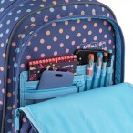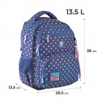 Модель з максимальною кількістю кишень: 3 внутрішні, 2 бічні, 2 фронтальні та 1 потаємна. Продумана організація внутрішнього простору – гарантія бездоганного порядку та акуратного зберігання шкільного приладдя. Все красиво і «по поличках»: для кожного канцелярського предмета – місце.