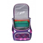 В основном отделении предусмотрены разделители для книг и тетрадей. Снаружи вместительный фронтальный карман для пенала, ланч-бокса или других объемных предметов и 2 боковых кармана с эластичной фиксирующей резинкой.
