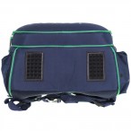 Мягкая уплотненная ручка для переноса. Тканевая петля, для подвешивания ранца. Твердое, износоустойчивое дно с резиновыми протекторами, защищает содержимое ранца и легко моется.