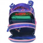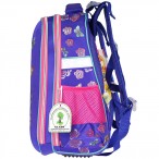 В основном отделении предусмотрены разделители для книг и тетрадей. Внутренний карман и органайзер для канцелярских принадлежностей внутри переднего отделения позволяют систематизировать и легко находить в рюкзаке школьные принадлежности и личные вещи ребенка. Карабин для ключей. Снаружи 2 вместительных боковых кармана с эластичной фиксирующей резинкой.
