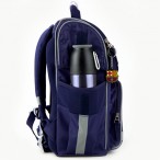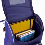 Рюкзак состоит из просторного отделения с системой внутренних разделителей для книг и тетрадей с фиксатором на резинке. Прозрачное "окошко" для расписания на внутренней стороне крышки. Передний наружный карман адаптирован под размер пенала и ланчбокса. 2 боковых кармана на липучке, куда легко помещается бутылочка для воды или термос.