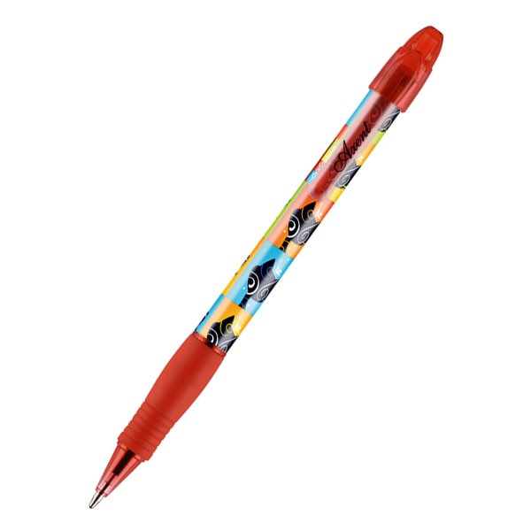 Ручка с ярким принтом. Прорезиненная область захвата. Пишущий узел - 0,5мм. Длина стержня 107 мм. Длина написания 800 м. Цвет чернил - синий.