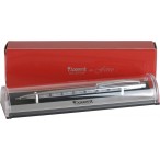 Ручка шариковая автоматическая с поворотным механизмом. Металлический корпус с рельефным рисунком. Лаковое покрытие корпуса. Стержень типа Parker - ABR1025-A. Длина стержня 98 мм. Длина написания 2000 м. Цвет чернил - синий.