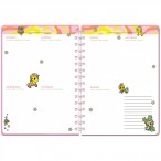 Кріплення сторінок на спіралі – дуже практичне та зручне: щоденник можна розкривати під будь-яким кутом, не пошкоджуючи палітурку. Еластична резинка фіксує обкладинку та захищає від небажаного розкриття щоденника. Планер має 5 різних дизайнів тижнів, які періодично повторюються. Поля для розкладу та розвороти з охопленням тижня – зручні для планування та стильно оздоблені. В спеціальній кишені можна зберігати записки, листівки, наліпки та інші «скарби». Два аркуші з унікальними тематичними стікерами – для гарного настрою та ефектного декорування щоденника