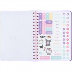 Кріплення сторінок на спіралі – дуже практичне та зручне: щоденник можна розкривати під будь-яким кутом, не пошкоджуючи палітурку. Еластична резинка фіксує обкладинку та захищає від небажаного розкриття щоденника. Планер має 5 різних дизайнів тижнів, які періодично повторюються. Поля для розкладу та розвороти з охопленням тижня – зручні для планування та стильно оздоблені. В спеціальній кишені можна зберігати записки, листівки, наліпки та інші «скарби». Два аркуші з унікальними тематичними стікерами – для гарного настрою та ефектного декорування щоденника