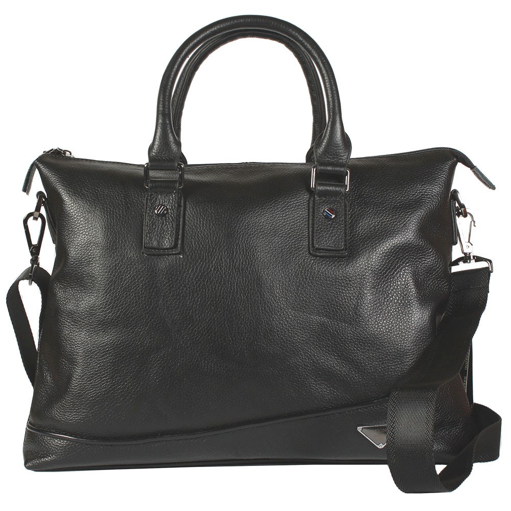 Мужская деловая сумка из натуральной кожи на двух ручках. Формат А4. Закрывается на молнию. Одно отделение. Внутри отделение для ноутбука, карманчики для мобильных телефонов и карман на молнии. Снаружи с тыльной стороны карман на молнии. В комплекте съемный текстильный плечевой ремень.
