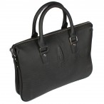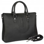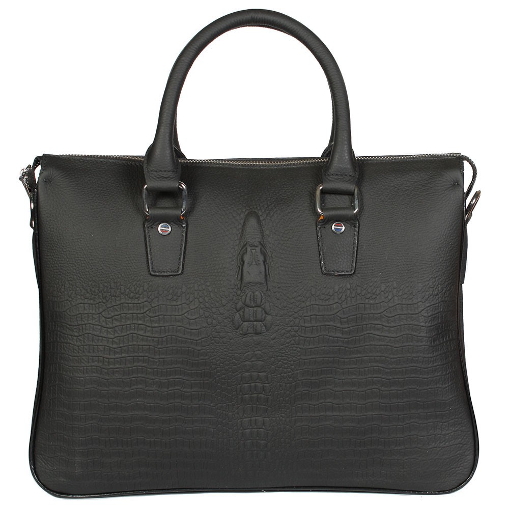Сумка из натуральной кожи с тиснением под рептилию на двух коротких ручках. Внутреннее пространство разделено на два отделения карманом на молнии. Внутри есть отделение для ноутбука, карман на молнии, карманчики для мобильных телефонов и два кармана для визиток. В комплекте съемный текстильный плечевой ремень.