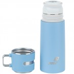 Стриманий дизайн підходить для будь-якого віку та стилю. Зовнішнє пластикове покриття кришки приємне на дотик і не нагрівається. Саму кришку-чашку зі сталевою основою та зручною ручкою можна використовувати як горнятко — пити зручно навіть у дорозі.