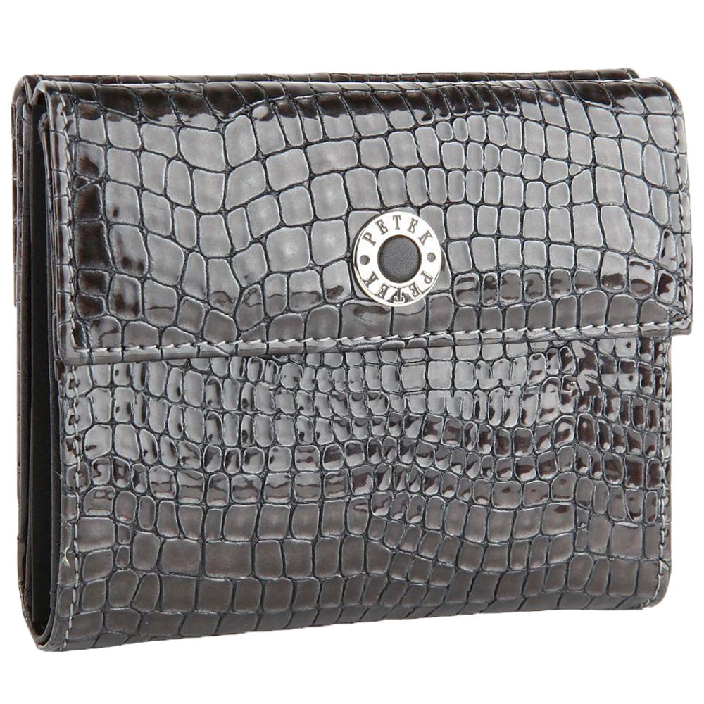Маленькое портмоне PETEK P0335-091-26, которым могут пользоваться как мужчины, так и женщины. Застегивается на кнопку. Внутри имеет два отделения для купюр. Снаружи под клапаном расположена монетница, четыре отделения для кредитных карт и один многофункциональный карманчик. На стыке между отделением для купюр и монетницей расположено потайное отдение с доступом сверху. Размер: 100х90 мм.