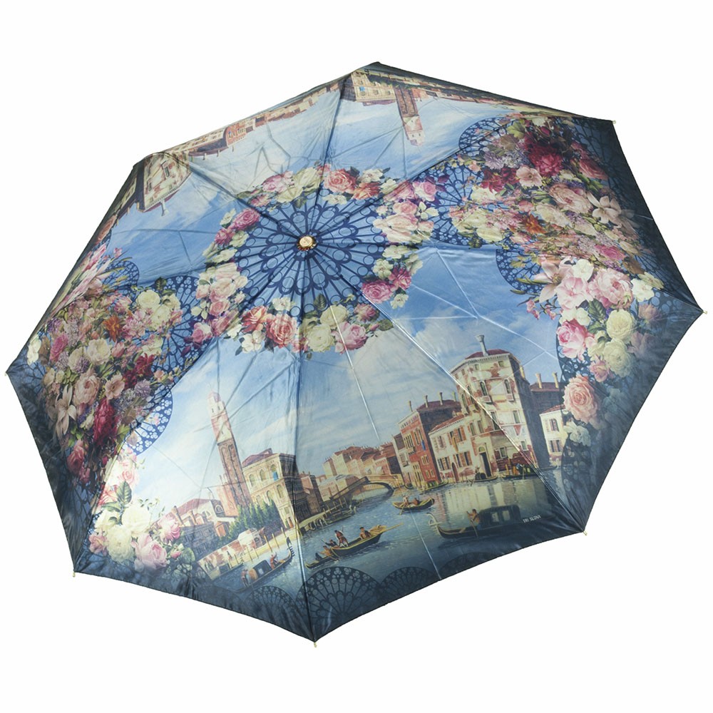 Женский зонт известной торговой марки ТРИ СЛОНА. Полный автомат. Материал купола: 100% полиэстер, обработанный водоотталкивающей пропиткой. Каркас выполнен из стали и алюминия. Спицы со стекловолокна (фибергласа) отличаются крепостью и долговечностью при этом имеют малый вес. Материал ручки - пластик, кожзам. Зонт оснащен системой "антиветер". Гарантия 6 мнсяцев. Вес 0,45 кг. 8 спиц. Радиус купола 58 см. В сложенном состоянии имеет размер 30 см.